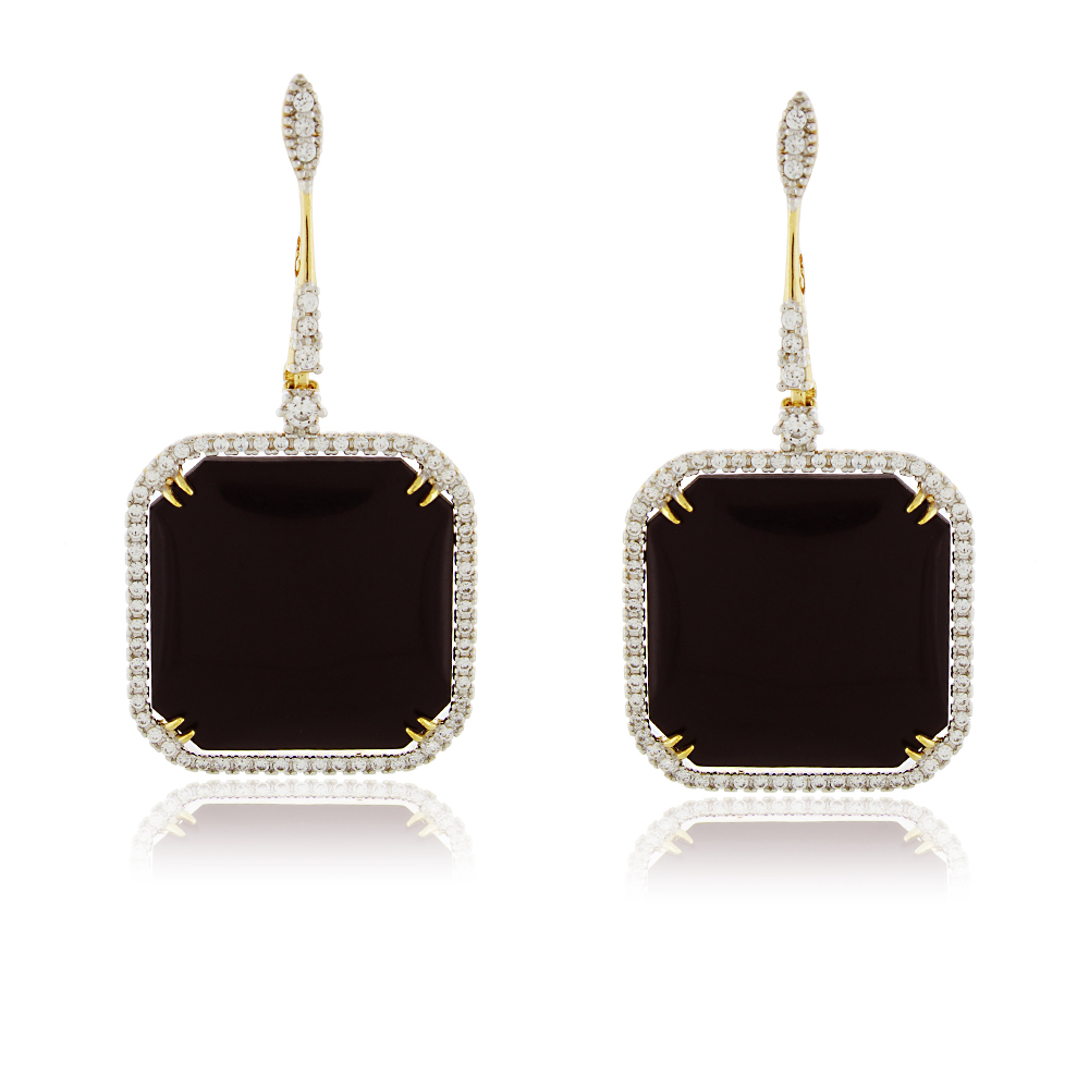 Brinco Dourado com Gota Quadrada Preta e Zircônias
