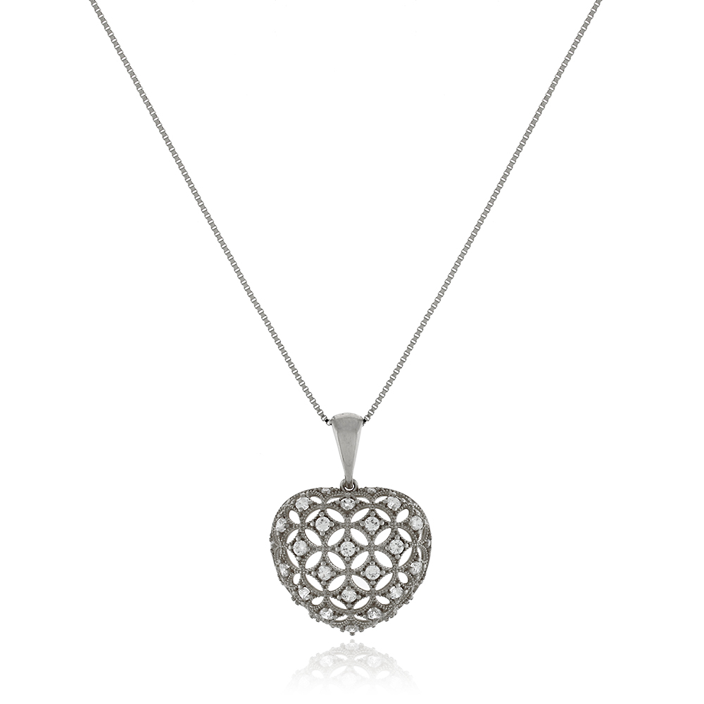 Colar Ródio Coração Vazado Cravejado