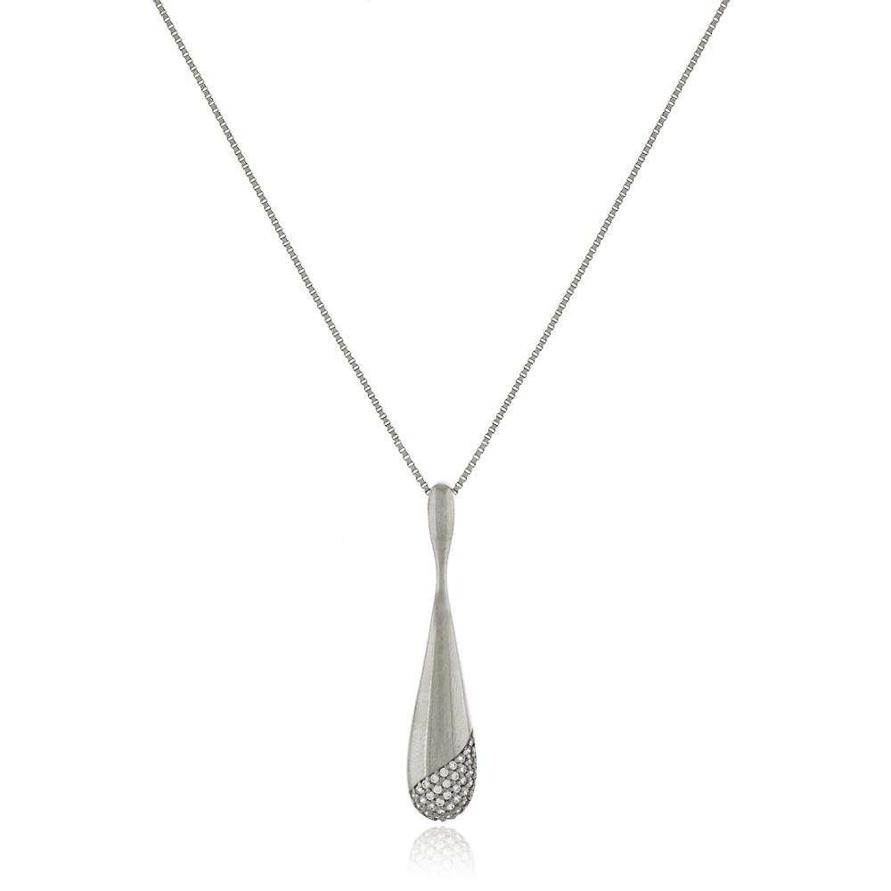 Colar Gota Alongada Cravejada Ródio