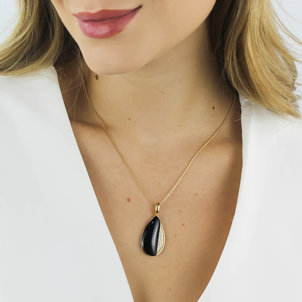 Colar Dourado Gota Preta com Detalhe Cravejado