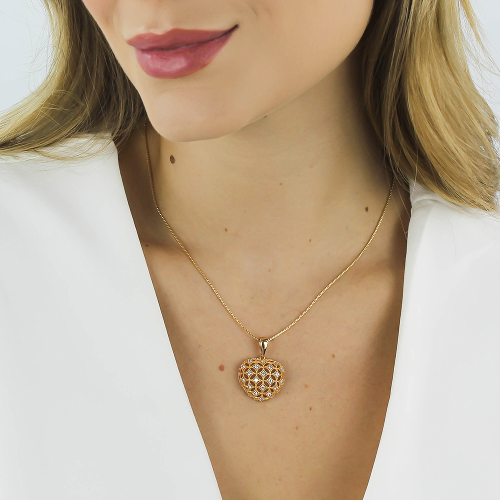 Colar Dourado Coração Vazado Cravejado