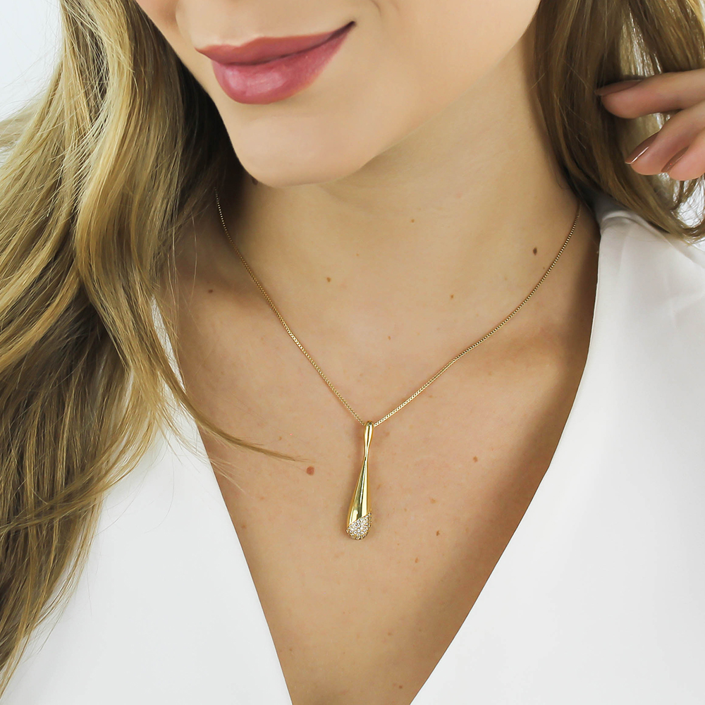 Colar Gota Alongada Cravejada