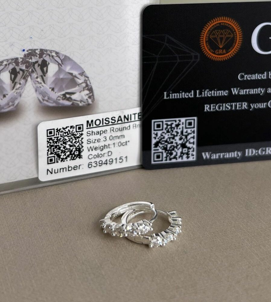 Brinco Argolinha em Prata 925 com Moissanite e Certificação GRA
