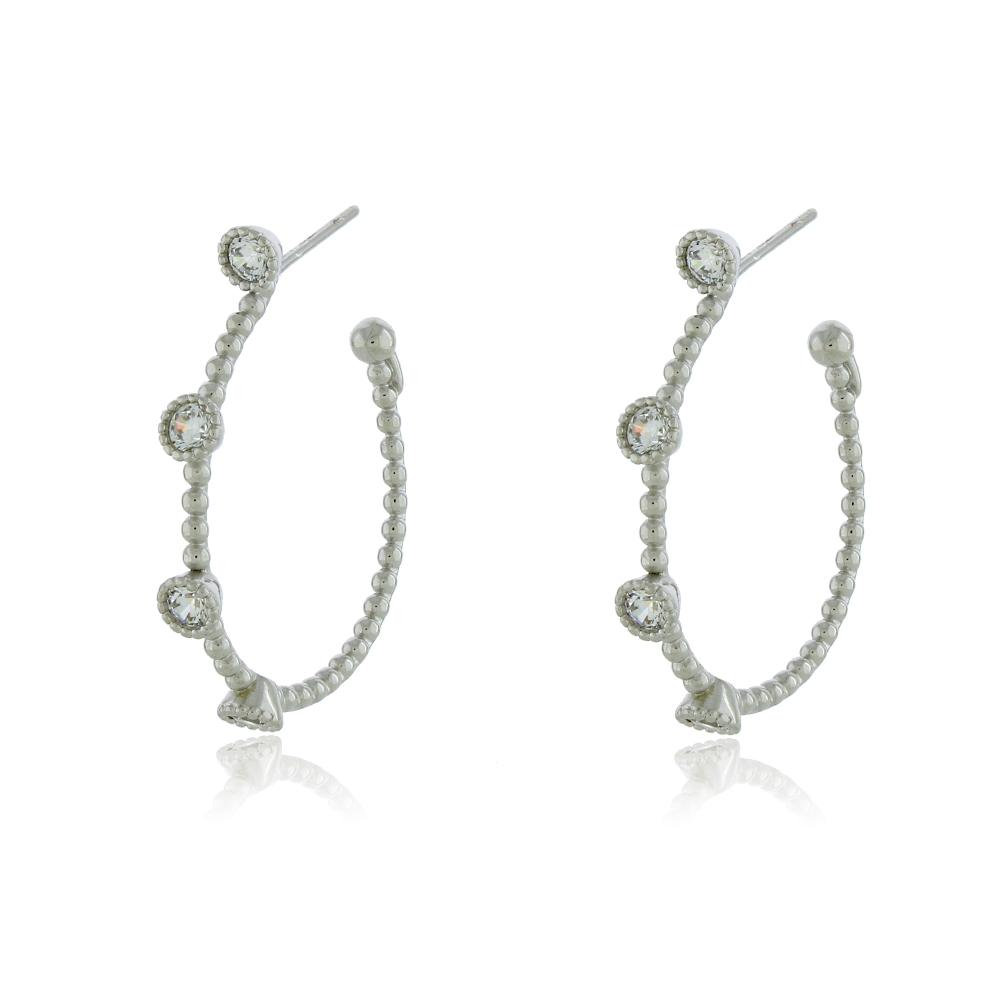 Esta argola moderna possui um design composto por pequenas esferas que formam a estrutura da peça, adornadas com zircônias brancas lapidadas estrategicamente posicionadas ao longo da argola.