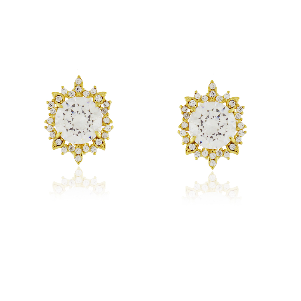 Este brinco em formato de sol possui uma zircônia central lapidada que reflete a luz de forma intensa, cercada por uma delicada moldura de micro zircônias brancas em cravação detalhada. O design radiante simboliza energia, poder e sofisticação, tornando a peça perfeita para ocasiões especiais ou para quem ama destacar o olhar com muito glamour.